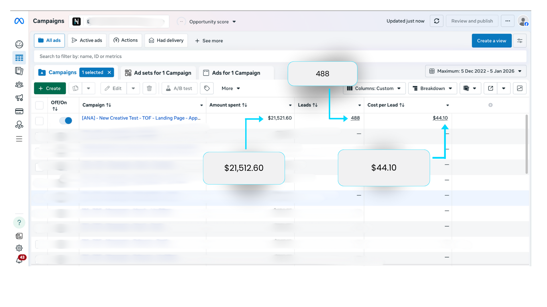 After we came in, fixed the funnel and made the customer experience more enjoyable, after testing creatives, offers and ad copy, all we needed was one campaign to scale the brand to the next level!